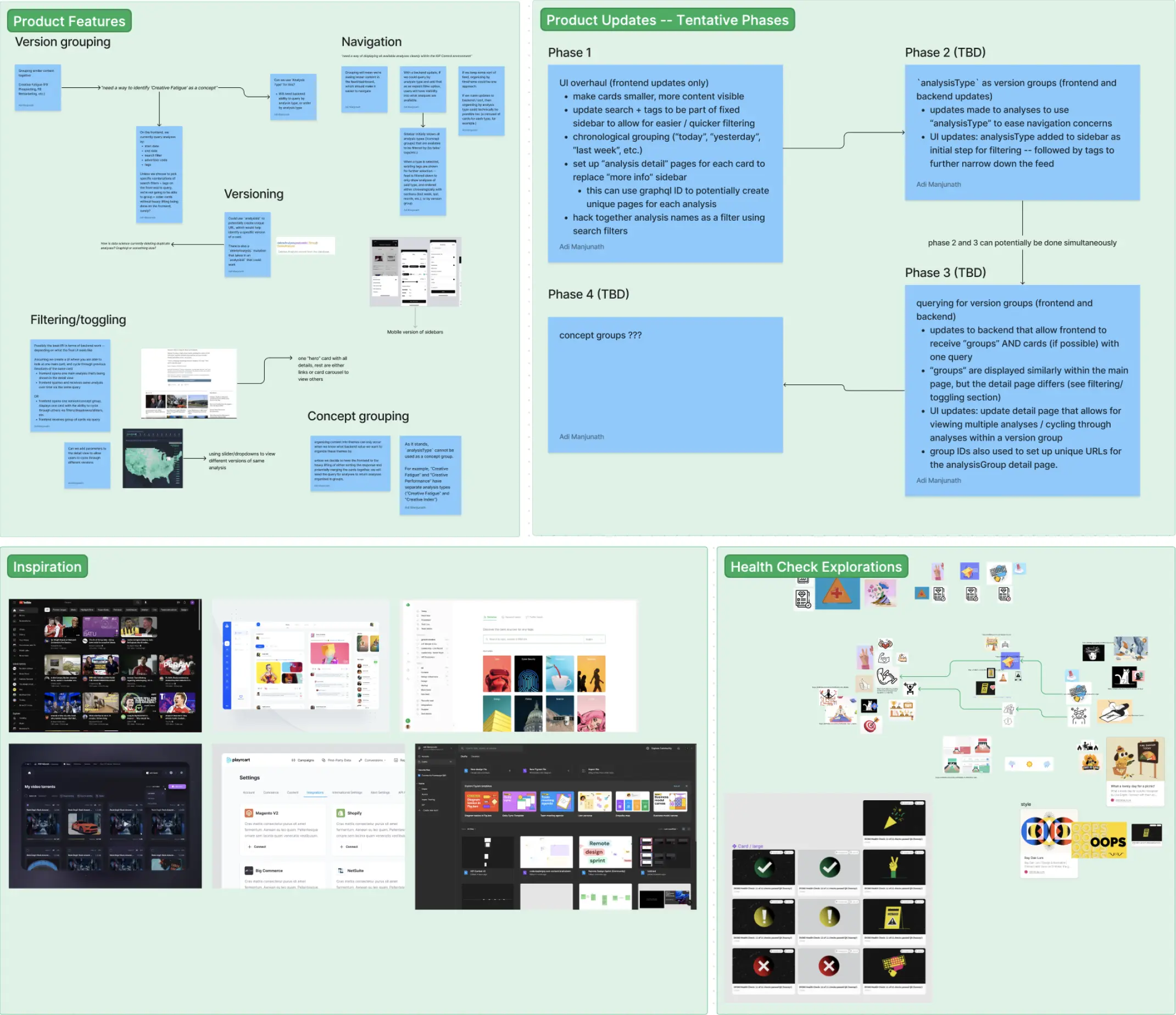 Our research and planning centered on optimizing content structure and organization –– we sought solutions that addressed similar challenges in other contexts. This meant looking for inspiration from a variety of sources –– Dribbble and Behance were useful, but also apps that we used on a daily basis.